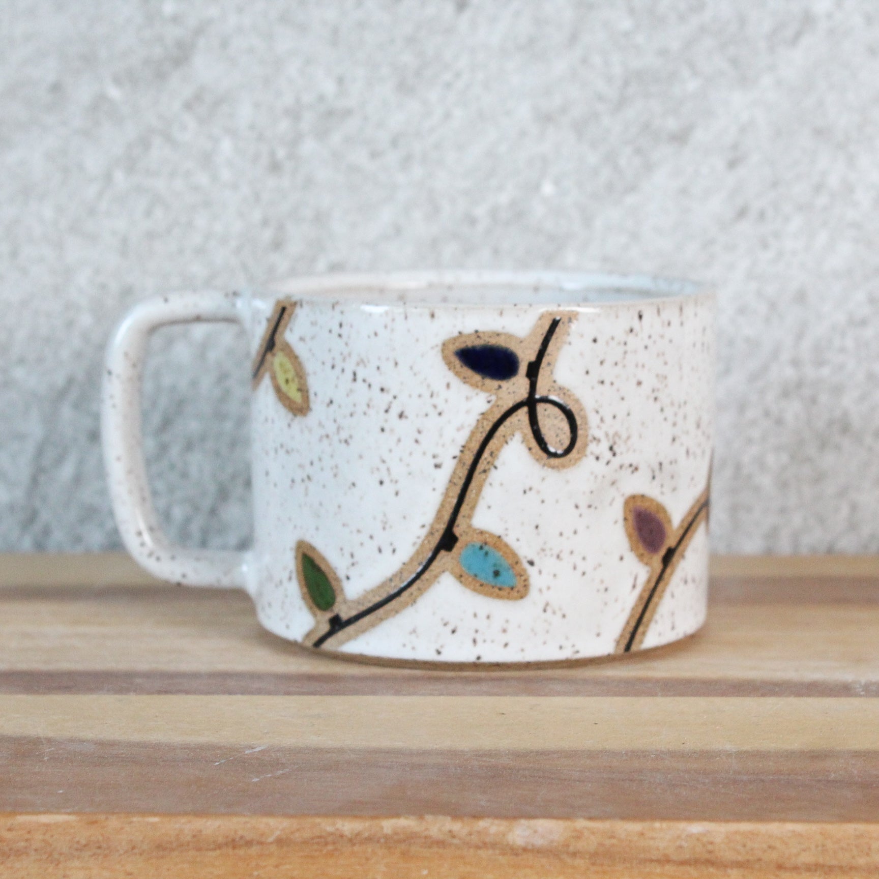 Mugs are approximately 4 inches wide and 3 inches tall and hold ~10-12 oz comfortably